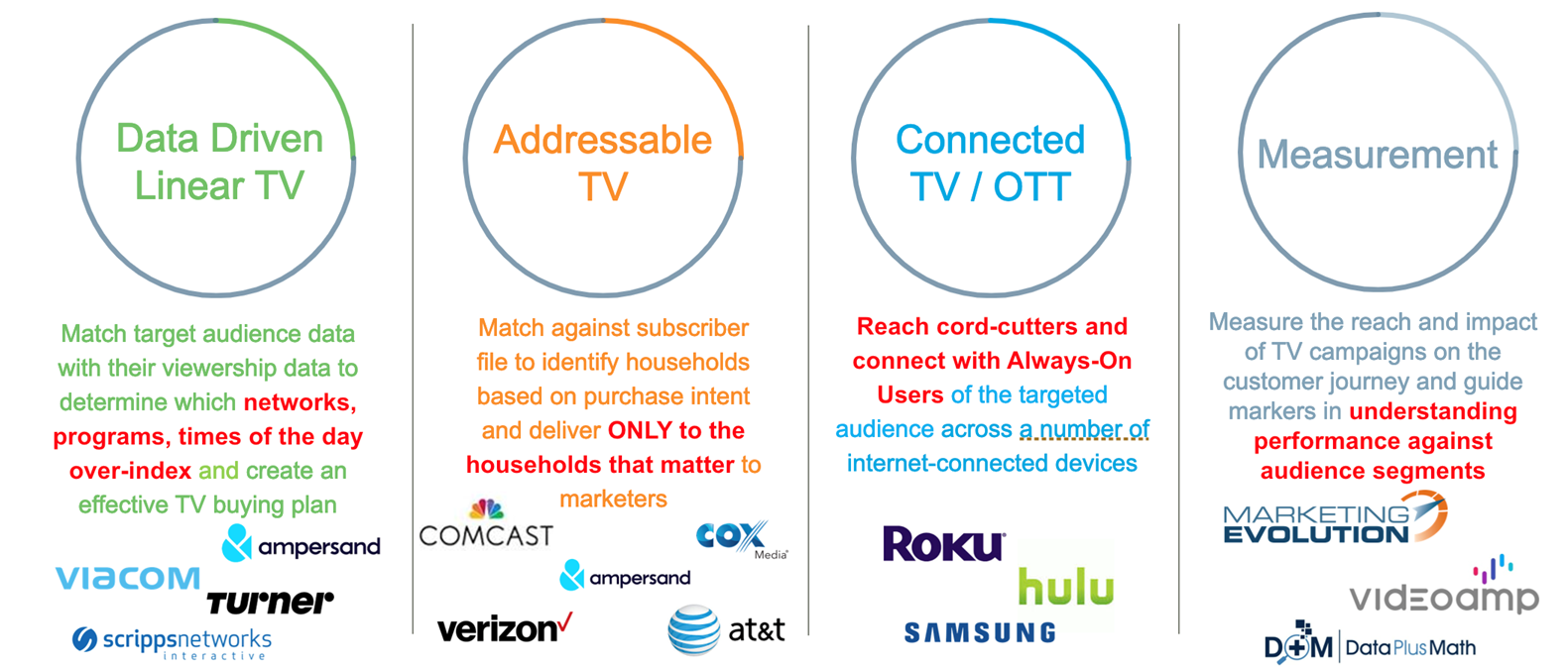 Advanced TV (ATV) provides advertisers an opportunity to utilize Cox Automotive’s data to target consumers on OTT/CTV and/or Addressable TV and minimize wastage in marketing spend on ATV. We use actual in-market signals from highly engaged consumers on the largest endemic properties to deliver unique, actionable audience segments; hence increasing efficiencies and return on advertising spend. The data we provide and how we provide varies based on how the video content is consumed.