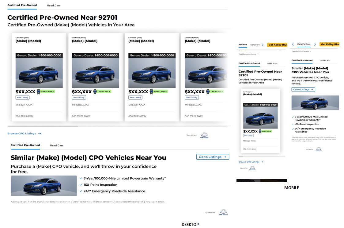 - One click tag (Optional): Redirects to internal KBB.com URL, provided by Cox Automotive