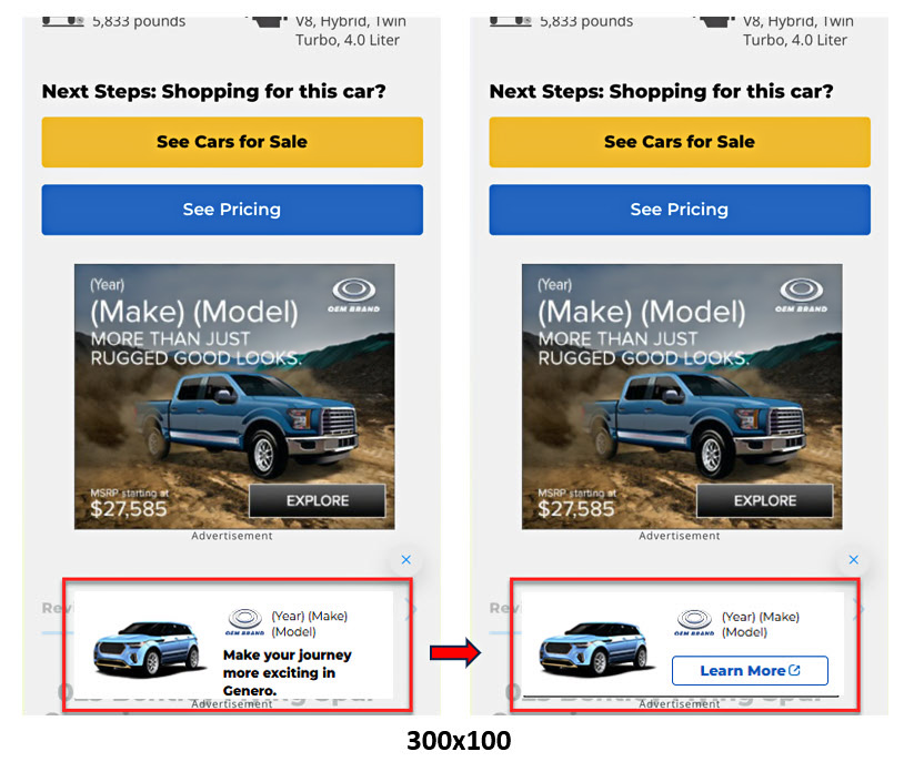 - One click tag – External CTA: Redirects to OEM site